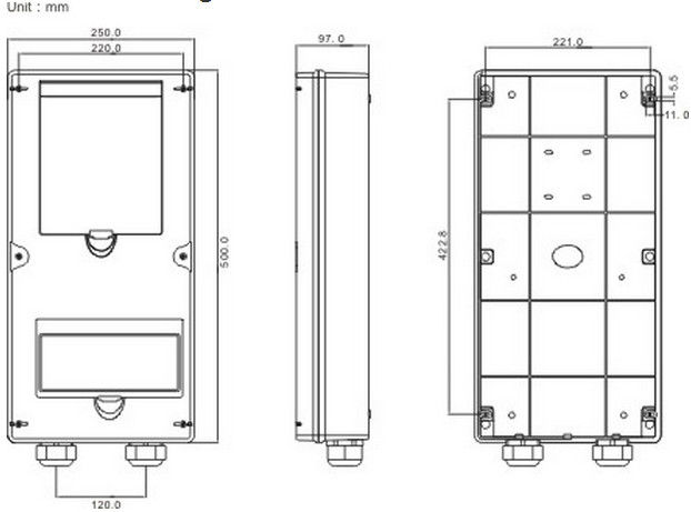 موقف واحد ثلاثة المرحلة عداد الكهرباء مربع IP54 مع مفصلات، قفل ومفتاح